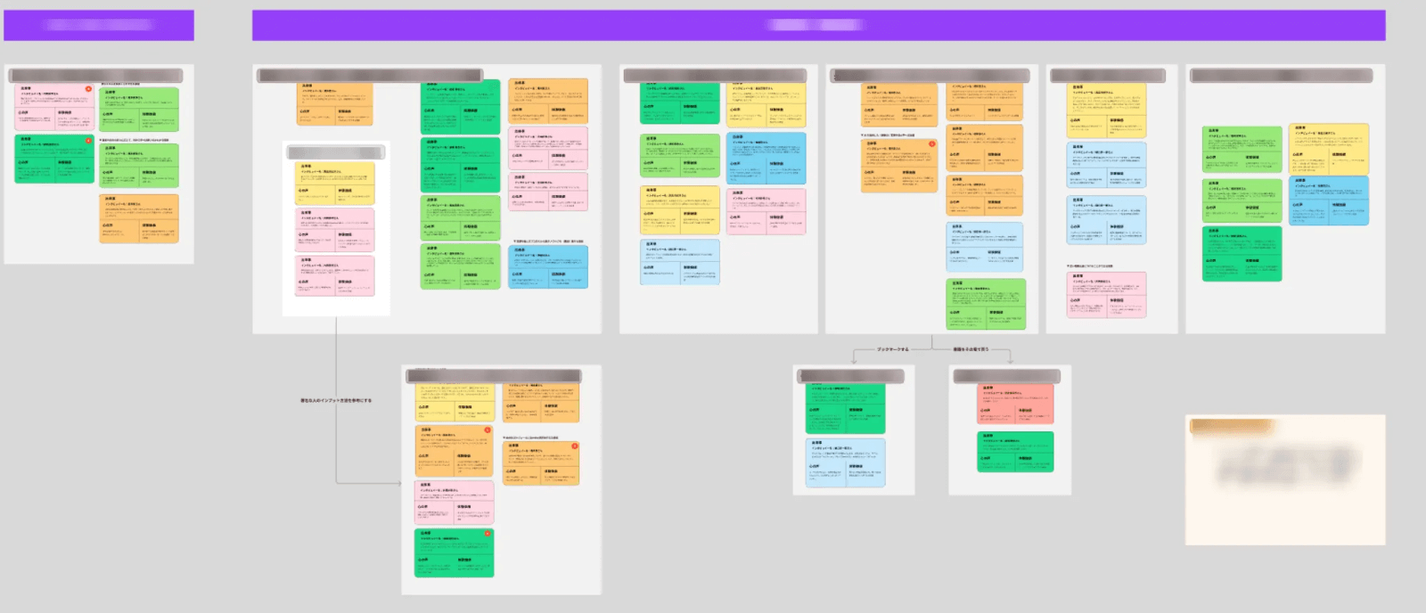 このフェーズではディレクターが主導しますが、デザイナーも議論に同席し、抽象的な構想を図解化。 全員の理解を可視化することで、チーム全体の認識を揃える動きをしていきました。