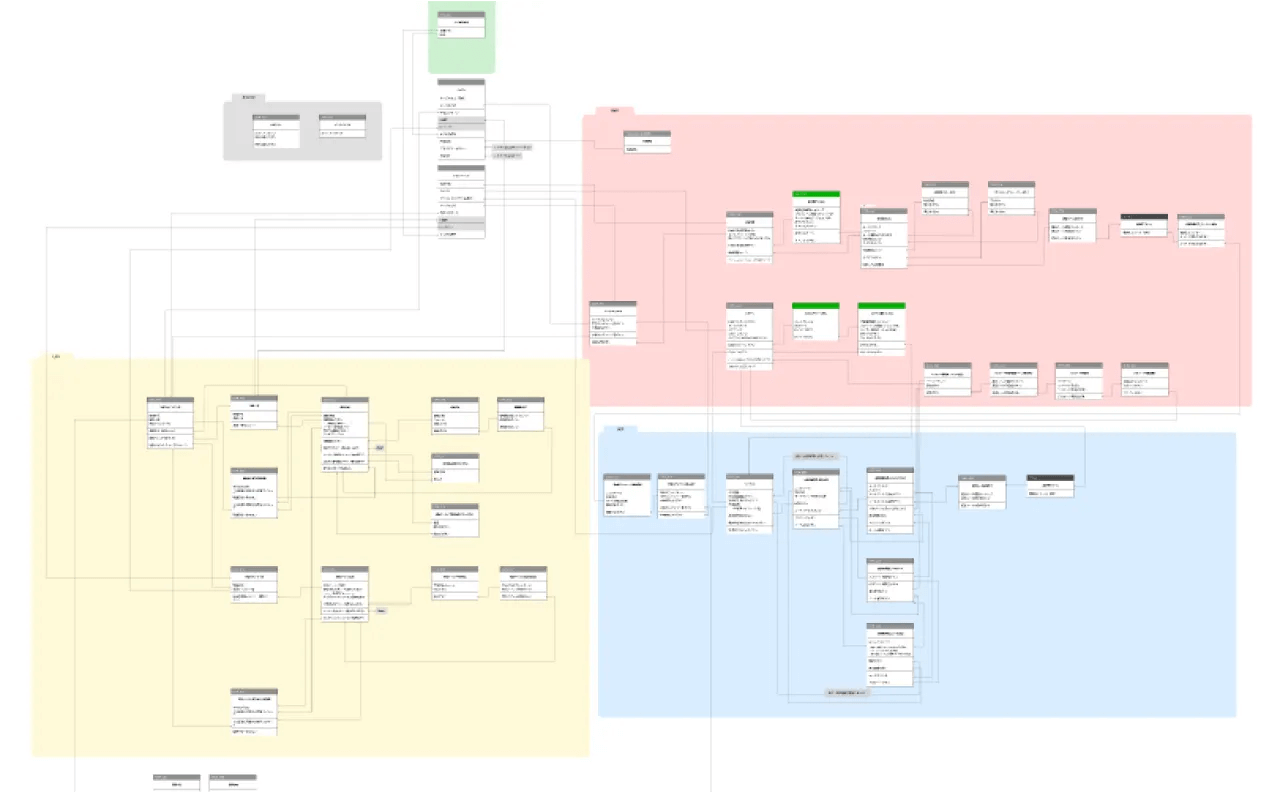 構想をもとに、実際のサービスへ落とし込むフェーズです。 ユーザーが行うタスクを洗い出し、画面遷移図を設計。機能構造とデータ構造を整理していきました。 業務フローも可視化し、クライアント側と実現可能性をディスカッションしながらアップデートしていきました。
