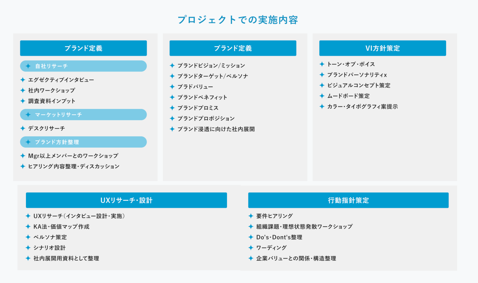 プロジェクトの勝ち筋策定、顧客のブランドや体験の設計、行動指針の策定まで包括的に関わる