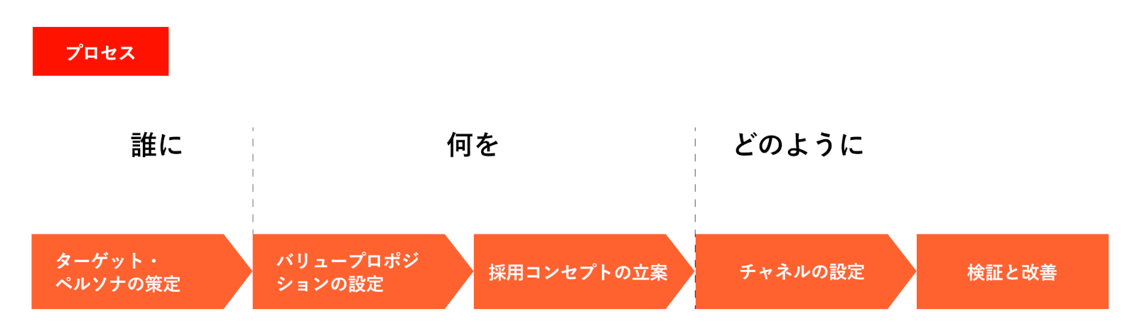 ターゲット・ペルソナの策定で「誰に」を言語化し、バリュープロポジションで「何を」を言語化し、競合との差別化ポイントを可視してきました。あとはこれらを元に採用コンセプトに落とし込んでいきます。